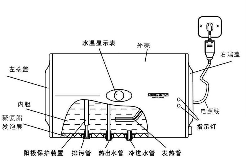 首先我们需要对整个热水器有个大概的了解。热水器主要由:内胆、发热管、管道、外壳、操作面板等组成。