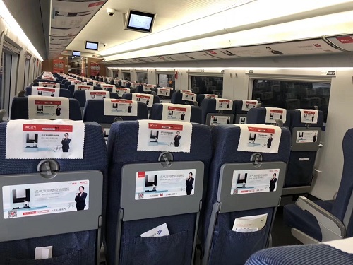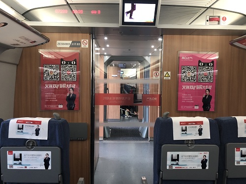 实现了广告全方位覆盖的包围式传播,通过头片+桌贴+海报+车厢内自动门贴+玻璃门贴+桌板创意贴+播音提示+车厢两端LED显示屏+车外身彩贴品牌露出的全媒体宣传,在高铁封闭的传播环境中,无处不在的品牌形象和产品潜移默化地植入乘客的潜意识,形成影响心智的品牌效应。